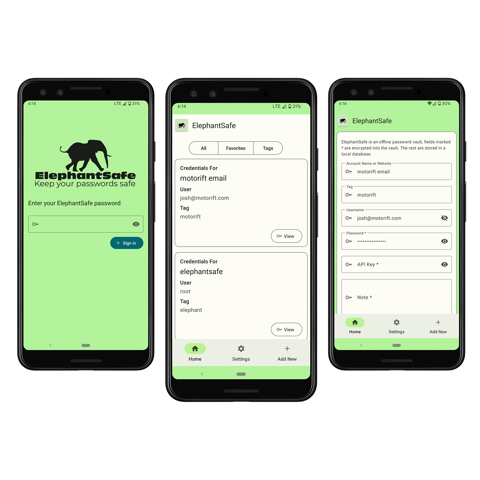 We use highly secure encryption to keep your passwords safe, and also use random keys, IVs, and salts to enhance the security of the encrypted data. In addition to ElephantSafe, I have also developed Motorift, a motorcycle data logger that helps riders track and analyze their rides.